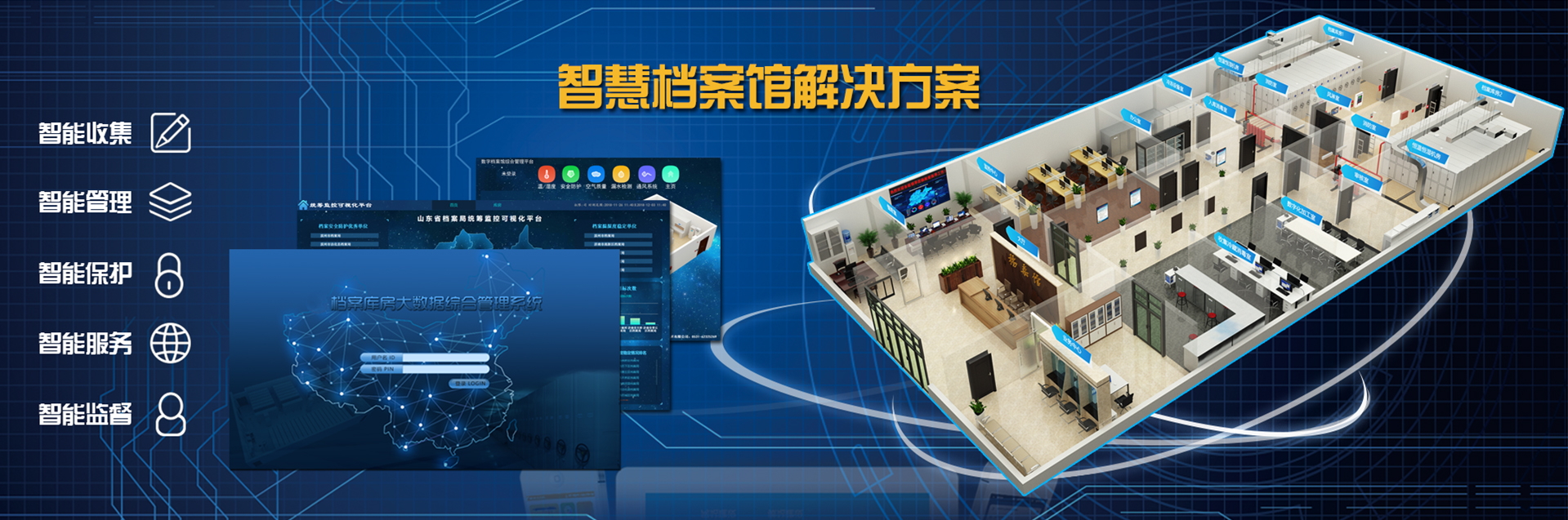 國韻根據(jù)山東省委宣傳部檔案管理的實際需求,為其設計建設了檔案庫房智能化綜合管理系統(tǒng),該系統(tǒng)將溫濕度自動測控、智能防火、智能防盜、消毒滅菌等檔案保護功能集成于綜合管理平臺,實現(xiàn)了檔案保護管理的智能化。該項目改善了山東省委宣傳部檔案庫房的環(huán)境,強化了對檔案的管理和保護。